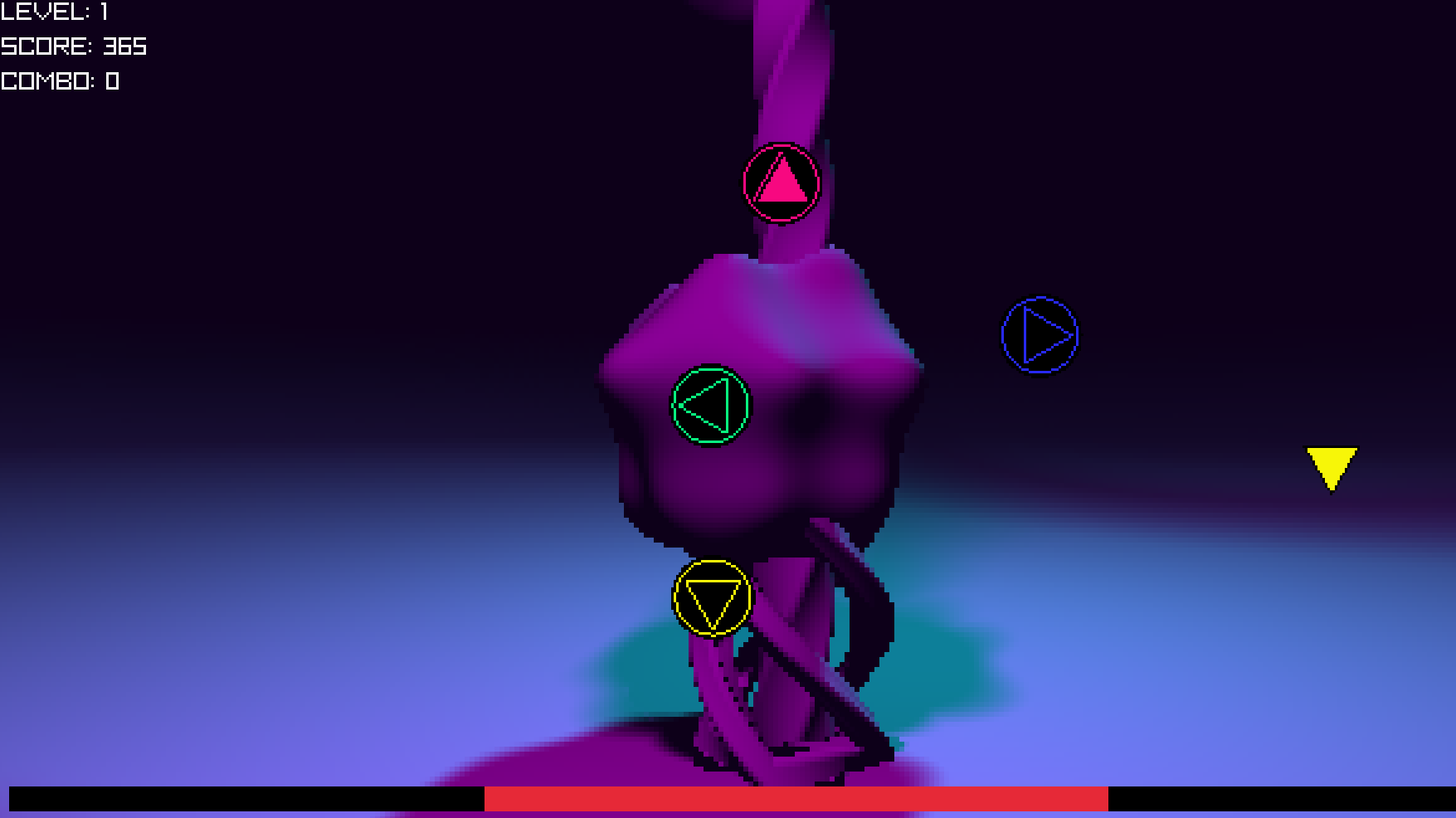 Hah! This is a fun idea. I'm *terrible* at rhythm games, but I liked the gimmick of having the targets wobbling around the screen. It has some great chiptune action going too.